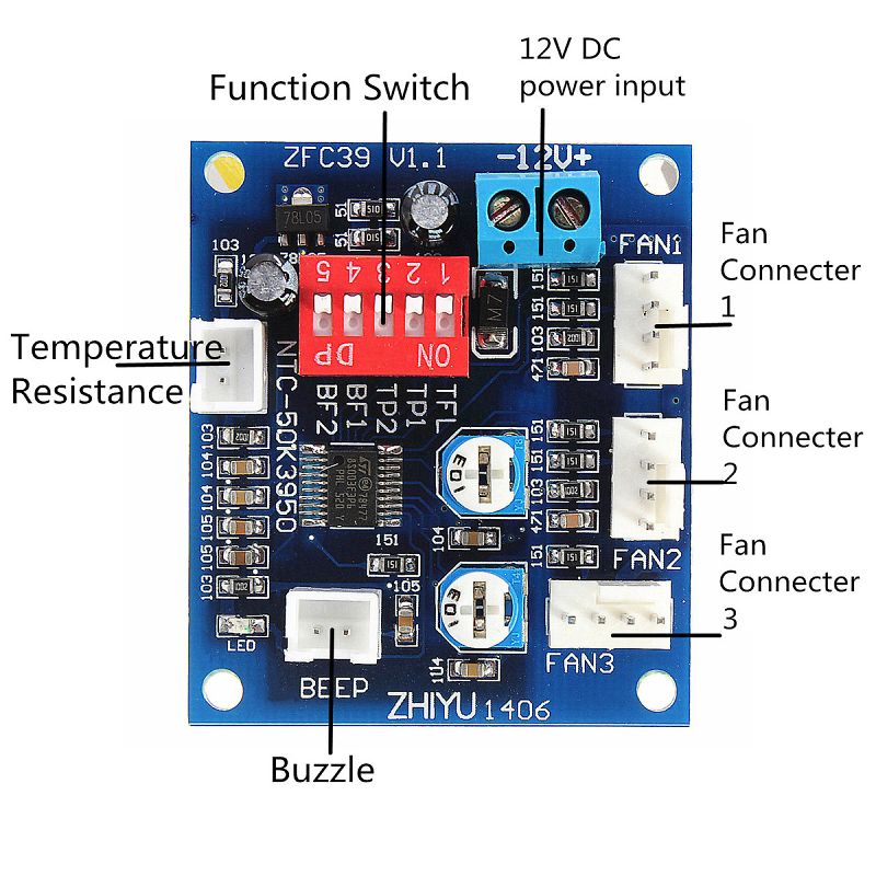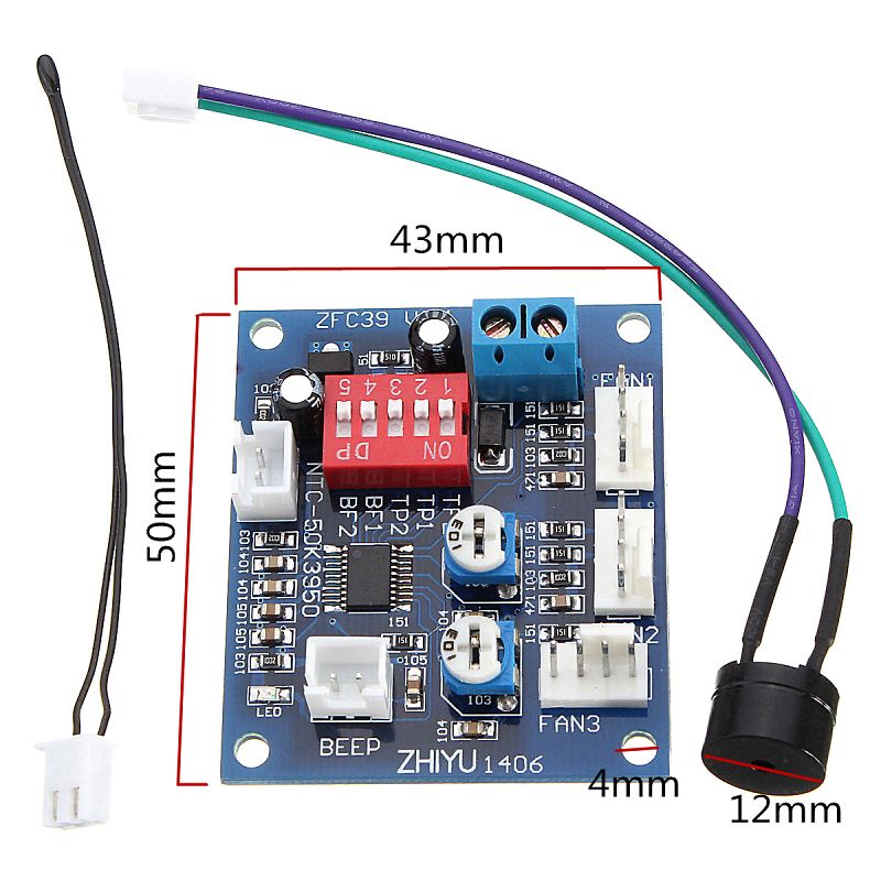 3系統PWMファン温度制御コントローラ DC12V 43mm×50mm×15mm